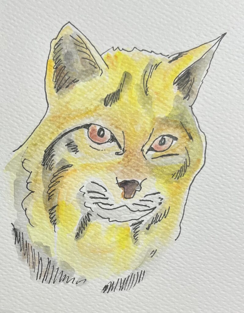 9月になって、手元に残った下絵のオリジナルに、自分の練習として透明水彩絵の具を塗ってみた。水を入れた筆ペンで薄く塗りはじめ、乾いてから少しずつ濃い色を上塗りしていった。色塗りはトラウマになったくらい苦手であったのだが、思っていたより上手く濡れたので気分がよくなった。今後の練習にも張り合いが出てきた記念すべき1枚だ。