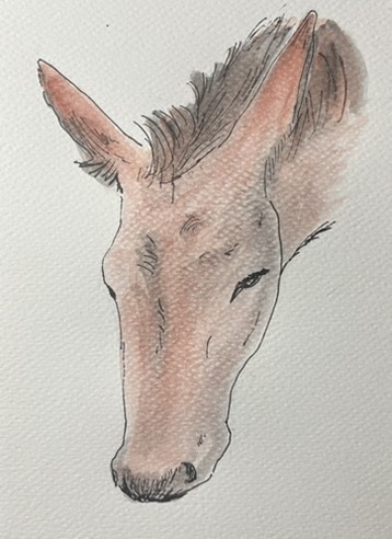 ネットの画像検索で見つかったロバを描いてみた。若い頃、北、中、南米旅行した時、生まれて初めて実物のロバを見た。メキシコのチアパス州の山岳地帯にある州都サンクリストバル・デ・ラス・カサスで見たのが初めてだ。中南米の田舎ではどこにでもいた。ロバの背に荷物を乗せ、村々を結ぶ田舎の重要な資材の運送手段であった。