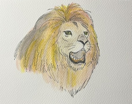 ネット検索で見つけたラインの画像は、何か迫力に欠けていた。目の色を塗り間違えて余計に迫力のないライオンになってしまった。