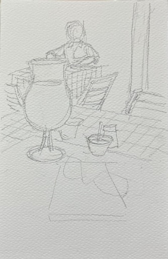 鉛筆書の下絵(定食屋で)