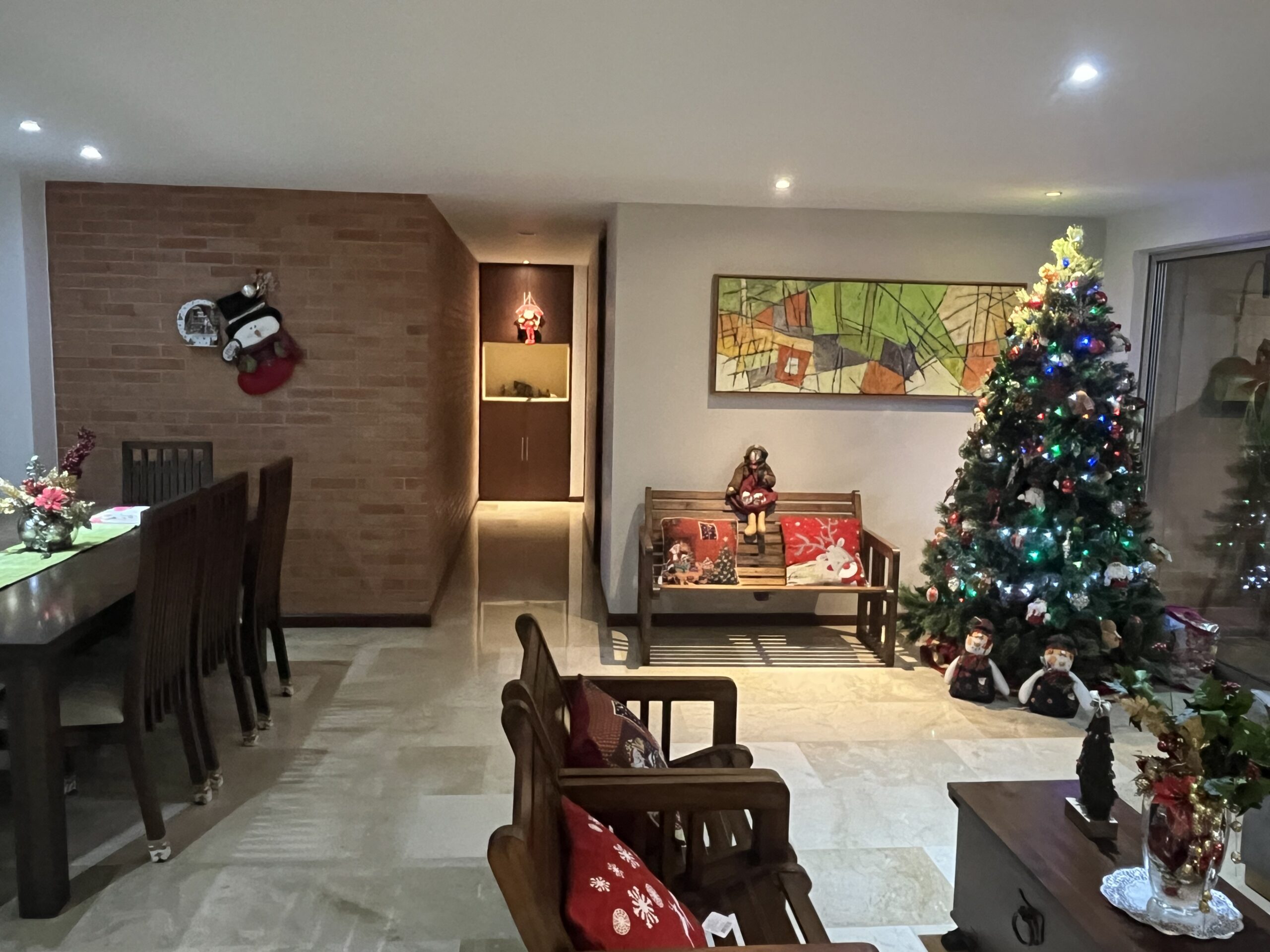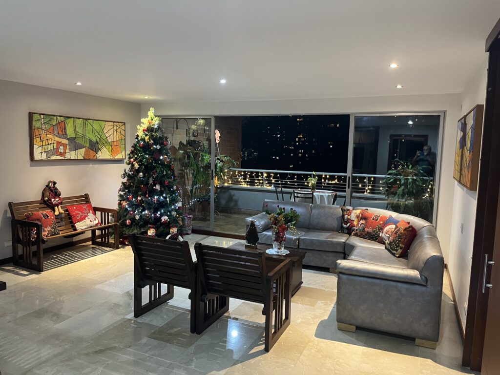 コロンビア人の大半がカトリック教徒であることから、メデジンでは一年を通じて誰もが心待ちするイベントはクリスマスだ。イヴの夜は家族や友人達が家や別荘、または貸別荘などに集まって一緒に祝う。クリスマスの飾りつけをするのもとても早い。隣人は11月の半ばからすでに入口のドアに飾りつけをしていた。我が家も11月の最後の週にはツリーと一緒に他の飾りつけを完了した。マンションの各階のバルコニーの手すりも、LED電飾が取り付けられて、夜になると街中の家やマンションが点灯される。見慣れた夜景よりとても華やかになる。