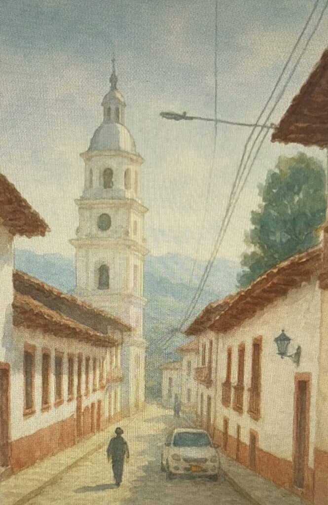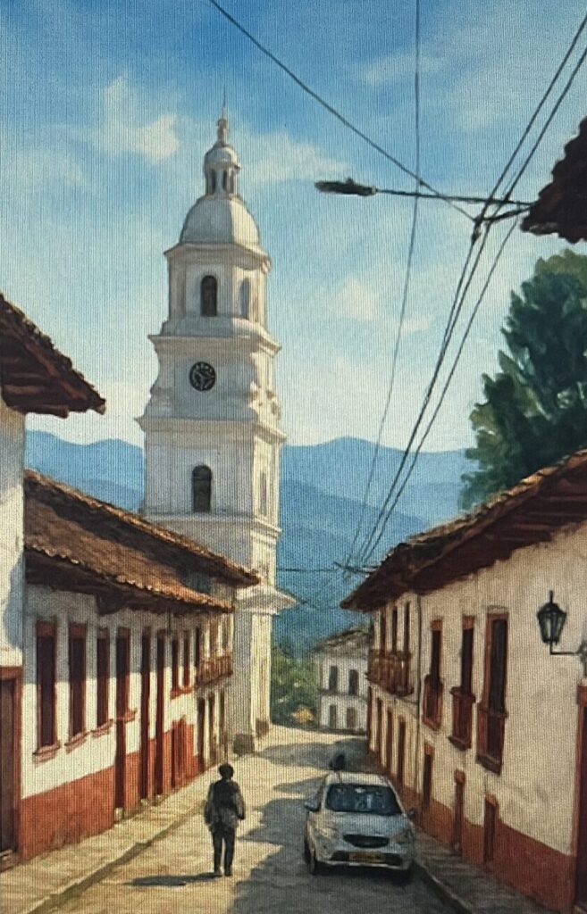 翻訳だけでなく、色々な事を調べるのにも活用しおり、たまたま水彩画の技法や混色についてに質問をすると、すぐに詳細な情報を得ることができた。その時、写真をもとに水彩画を描けるか質問をしてみた。写真を添付すればすぐにできるという回答だった。自分が撮った下の風景写真を添付してみた。すると、「コロンビアの村とアンデスの山並みを撮った、素晴らしい構図の写真ですね。」と、すぐに返信がきた。写真の場所や自分がコロンビアに居ることも伝えてなかったので、とても驚かされた。