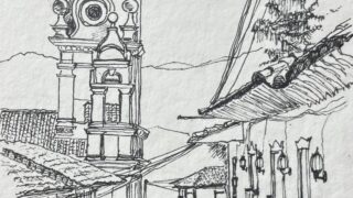 E. 定年後の話色々 E3. 水彩画をはじめてみた。4/5 レッスンの下絵に色を塗り初めて6枚目になった。かなり良くはなってきたが、まだまだ不満が残る。自分で撮った風景写真をもとに水彩画を描いてみた。イラスト風になってしまうが、結構気に入った絵になった。 2025.12.10 E. 定年後の話色々
